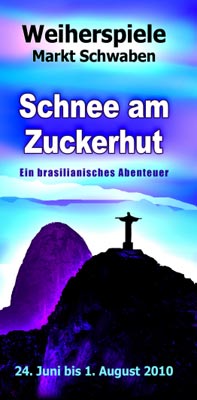 „Ich breite meine Arme aus um Euch zu beschützen“ verkündet die Christus Statue auf dem Corcovado und blickt hinab auf Rio de Janeiro, die Stadt „ am Fluss des Januar“. Mit: Franz Stetter, Anna Seiler, Tina Seidl, Fritz Humplmayr, Marion Maixner, Ricardo Eche, Michael Siegert, Fatima Nascimento, Juliana Marinho, Christian Placht, Isabella Weber, Hans-Jörg Diekhoff, Petra Schmidt, u.v.a. Tanz-Ensemble:Tropical Dance. Regie: Josef Schmid. Brasilianische Beratung: Ricardo Eche Also dann.... bis zum Wiedersehen am Weiher. Informationen